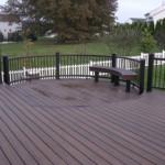 It’s always exciting to incorporate curves and circles into curved deck designs to add well-defined seating areas that are still part of the main deck. In this image, they incorporate an integrated curved bench and a step-down to define the circle of this portion of the deck.