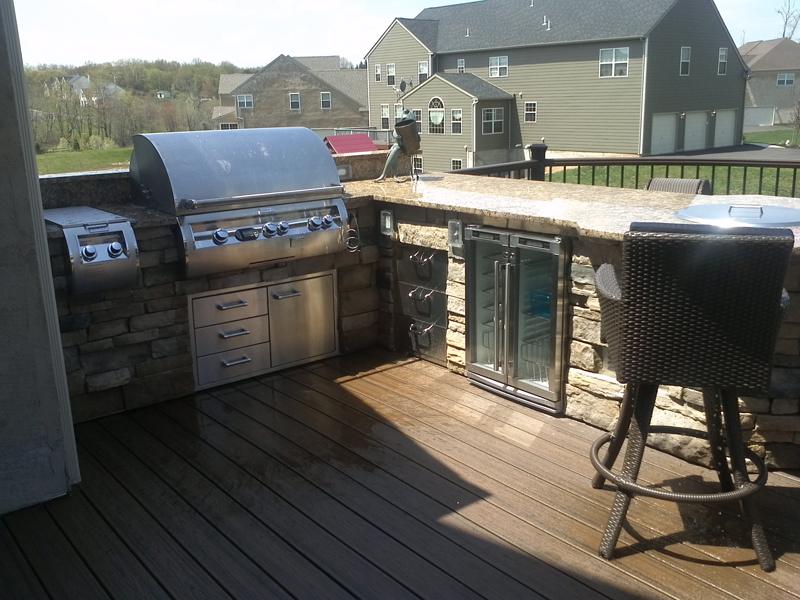 If you want a versatile and highly functional outdoor kitchen deck, Amazing Decks will exceed your expectations by creating a beautiful outdoor living space for you. Our outdoor kitchen builder design team can build an elegant area that’s ideal for entertaining, relaxing, and enjoying the outdoors. Imagine the many uses of an outdoor kitchen deck. When it comes time for birthday and anniversary celebrations, holiday gatherings, graduations, or intimate wedding receptions, a beautiful outdoor kitchen design that includes an excellent cooking system is the ideal way to go. Sometimes people forget that a deck is good for a lot more than just sitting around. This outside living area should be a true extension of your home and lifestyle, with easy access into and out of the house as well as the back yard. Amazing Decks takes all this into consideration in building decks with high quality materials and putting more than 40 years’ experience into every job.