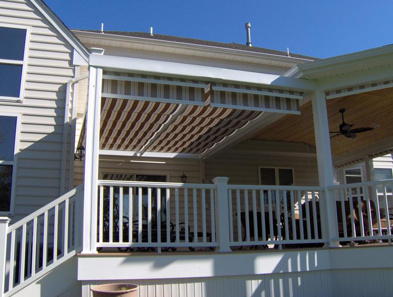For people who love the outdoors and don’t like being completely covered by a solid roof, patios or decks with pergolas give them the best of both worlds. Typically, the rails on these structures are 12 to 16 inches apart, allowing them to catch the sun at the right angle, which causes the pergola to throw a comforting shadow onto the space over which it sits.